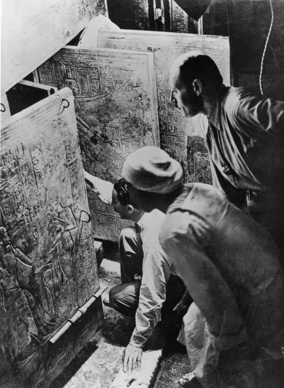 Ayer, tras visitar la sepultura, uno podía refugiarse de los fastos y del calor en la casa de Howard Carter. Al poco de entrar te sorprendía una voz profunda: la auténtica del propio descubridor en un viejo documental en blanco y negro sobre la tumba que se proyecta continuamente en una de las habitaciones y que muestra gente entrando y saliendo del recinto. Un bucle perfecto para reflexionar, en la tierra de la eternidad, sobre originales y copias....